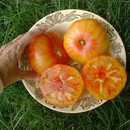 Our Organic Pineapple Slicer Tomato is a stunning heirloom prized for its large, bi‑colored fruits that ripen to a glowing blend of golden yellow and soft red blush. Each 8–10 oz slice bursts with a lush, fruity sweetness balanced by gentle acidity—evoking the taste of fresh pineapple—making it ideal for salads, sandwiches, or simply seasoning with a sprinkle of sea salt. Vigorous indeterminate vines produce steady yields all season long, delivering show‑stopping color and unmatched flavor from your garden to your table. ‘Pineapple’ is a must‑grow for anyone seeking both visual appeal and exceptional taste in their homegrown tomatoes.
